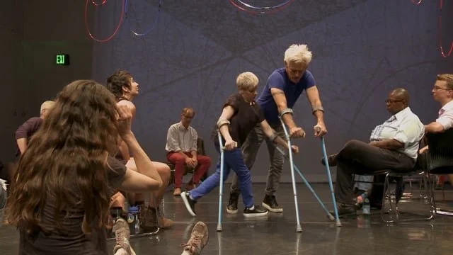 Choreographers Jess Curtis and Claire Cunningham convened a two-day symposium addressing issues of embodied perception, physical diversity and performance raised in their work The Way You Look (at me) Tonight. The event featured philosopher Alva Noë, dramaturge Luke Pell, scholars Julia Watts Belser, Simi Linton, and Krista Miranda, disabled artists and scholars Alice Sheppard, Bill Shannon, Jerron Herman, Sunaura Taylor and Marissa Perel.